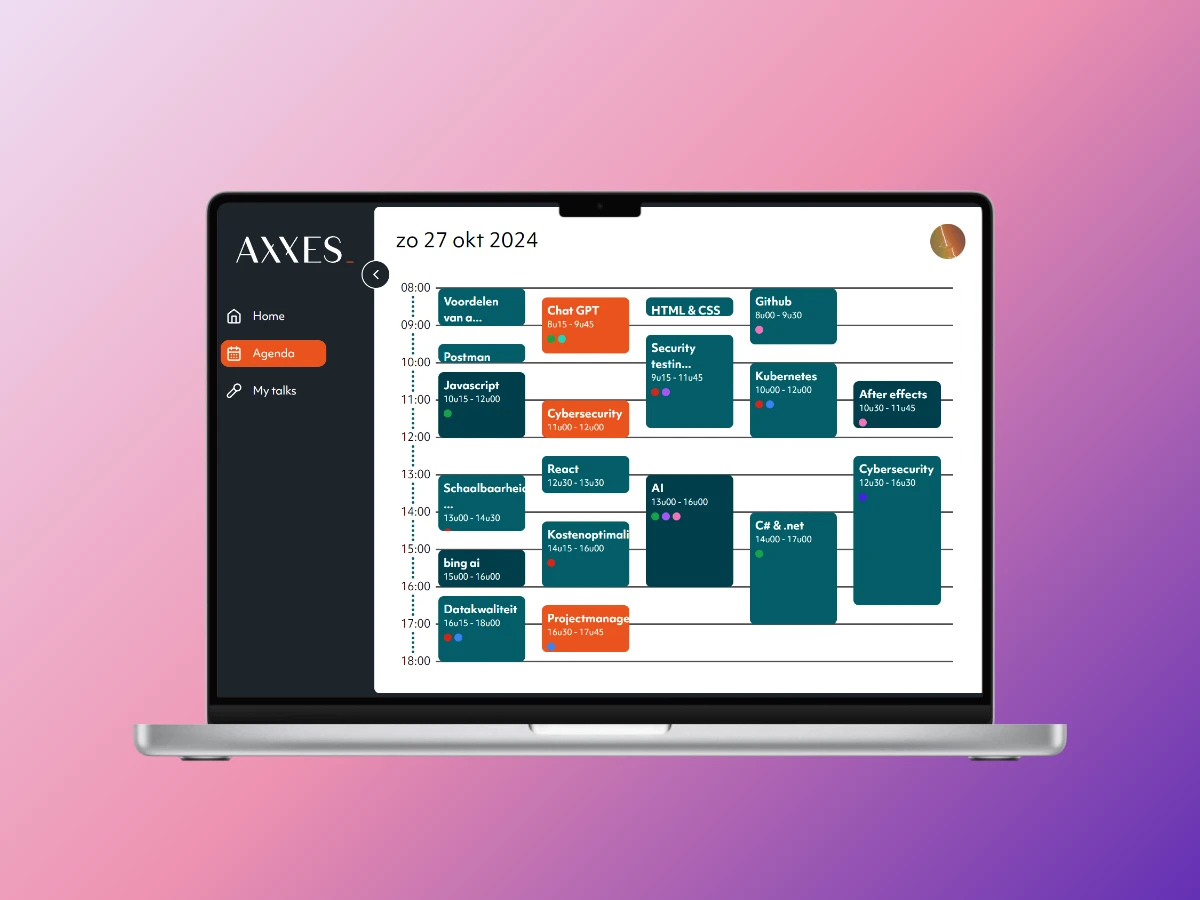 The second project for school and we had a beautiful project. we had the fun of making a project for Axxes. We made a conference tool whit a website and app. I was responsible for the backend and a part of the website and app.