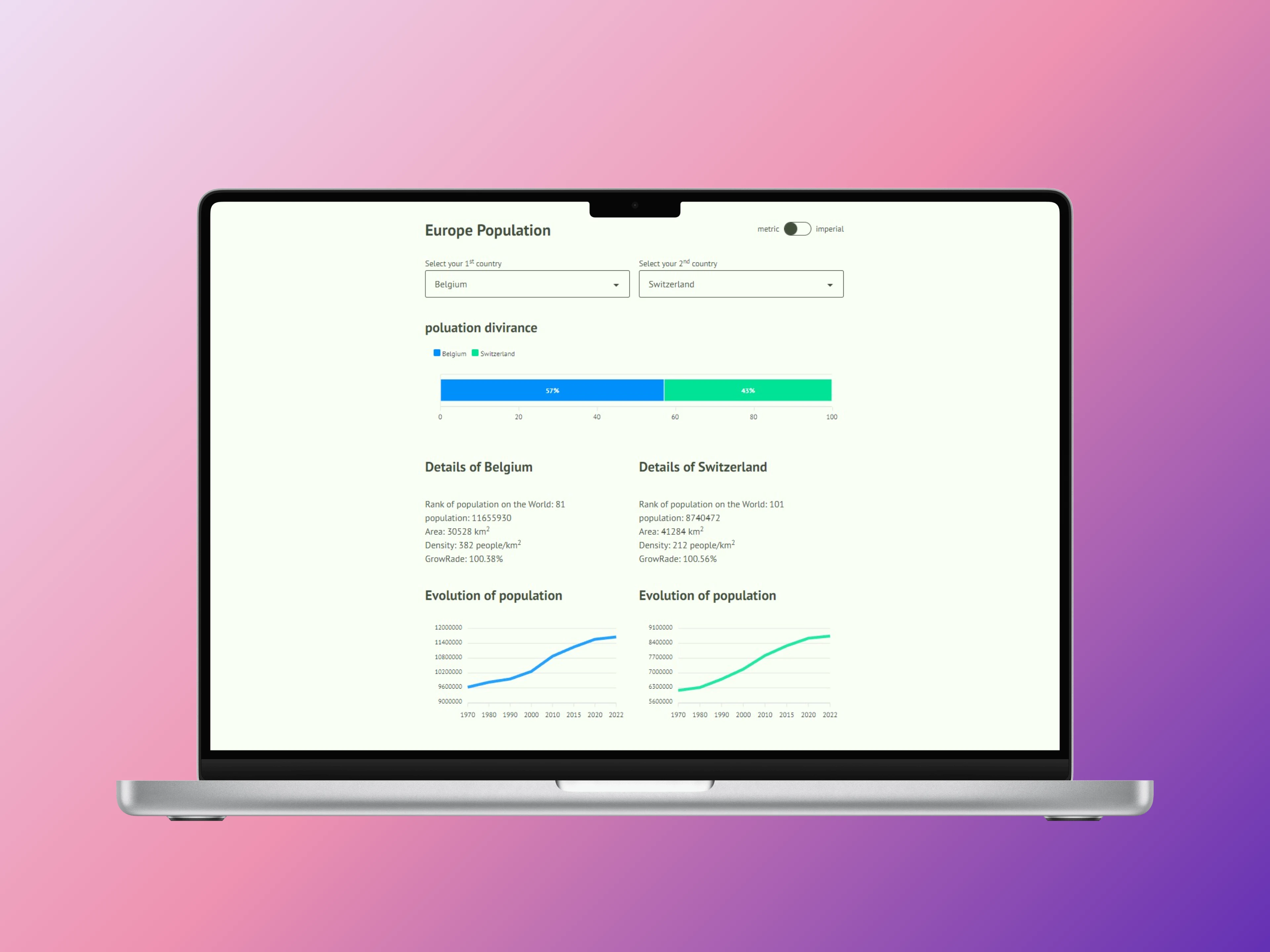 I had to make a website for the Interaction Design course. The website compares the population of European countries.